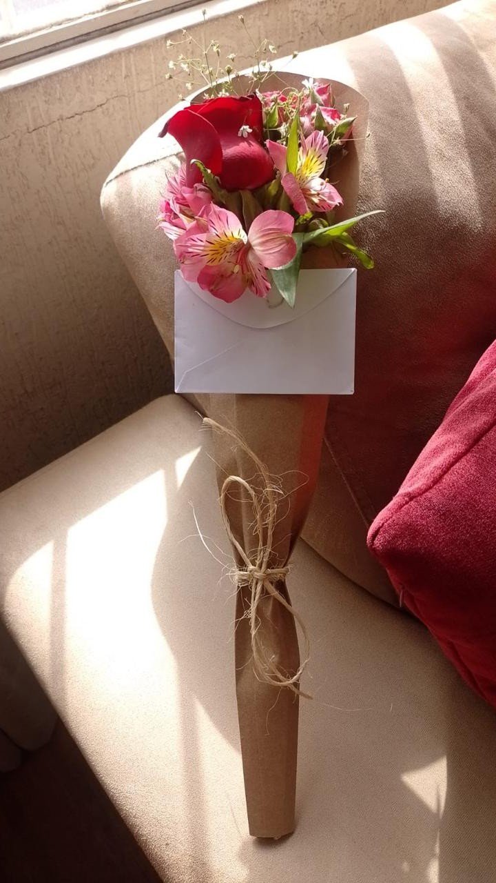 Nossos primeiros “encontros” foram inusitados: comprar remédio na Araújo, levar um lanche na porta do Mater Dei… Até que o encontro oficial aconteceu no sábado à noite, após o envio de um arranjo de flores pela manhã, acompanhado de um bilhete sem remetente, escrito: “Capítulo dois.”